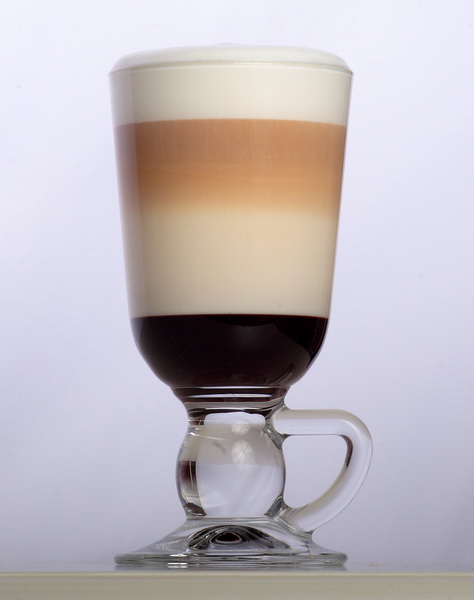 Способ приготовления: в высокий стакан наливают на 1/3 эспрессо, на 1/3 горячее молоко и на 1/3 какао, подают его как с взбитым в пену молоком, так и без него.